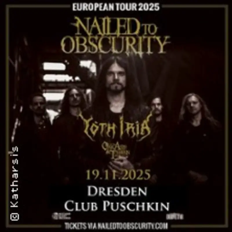 Bitte habe Verständnis dafür, dass wir als Dresden Nightlife für die Veranstaltung Nailed To Obscurity + Yoth Iria || Oak Ash & Thorn (19.11.2025), Club Puschkin keine Gewähr auf Richtigkeit und Vollständigkeit geben können. Diese Informationen werden von Eventim regelmäßig importiert und es kann sein, dass diese Informationen sich kurzfristig geändert haben.